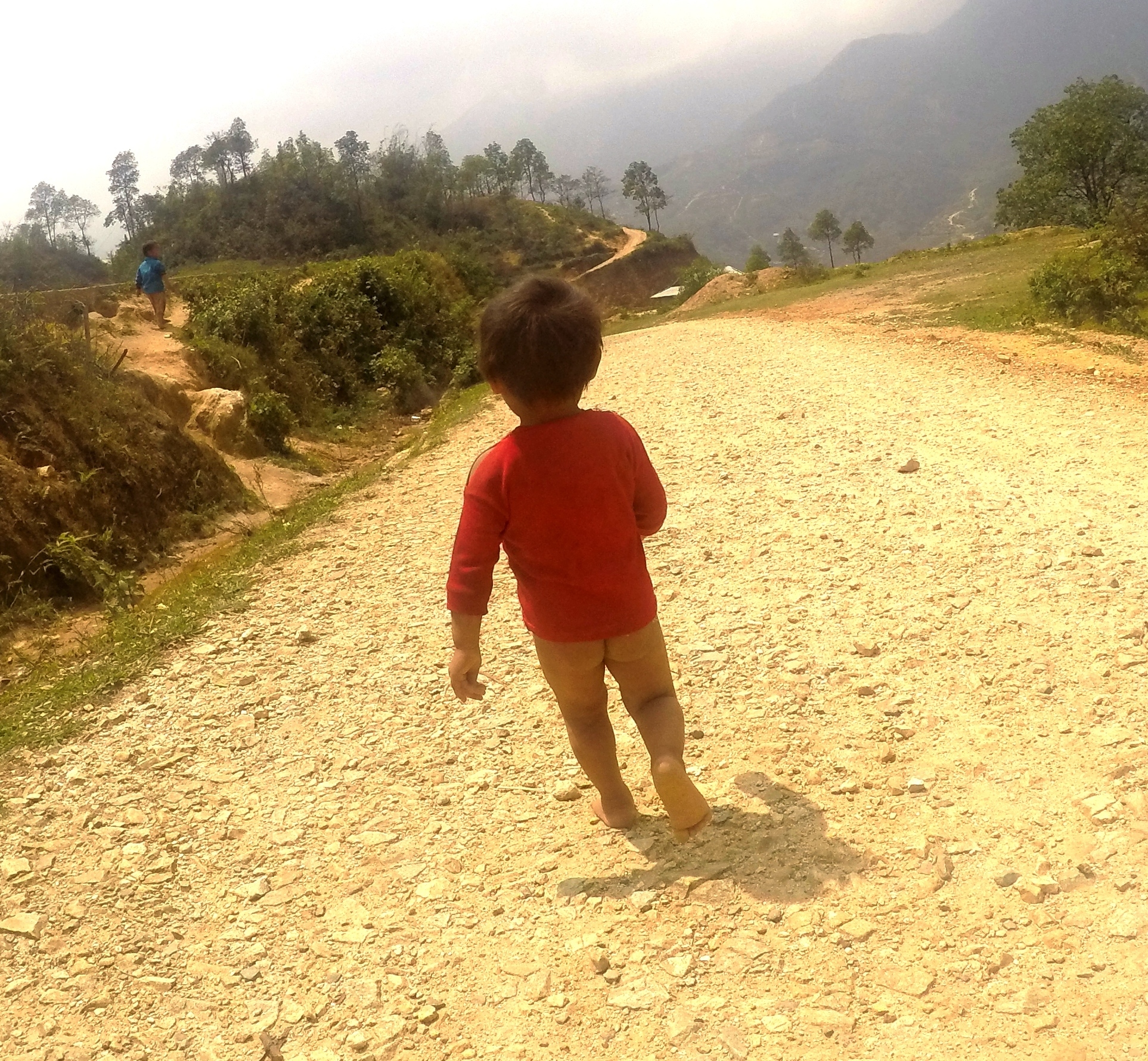 Baby walking around the mountains of Sapa, Vietnam